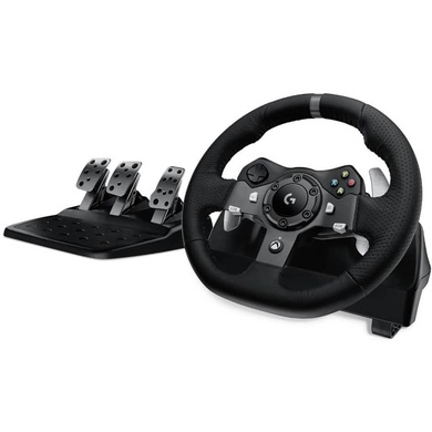 Get an immersive racing experience with the Logitech G920 Driving Force Racing Wheel. The G920 features a 10.24" racing wheel covered with hand-stitched leather. The wheel rotates up to 900° and features dual-motor force feedback for a realistic driving experience. In addition to the wheel, the G920 also comes with a 3-pedal set. The throttle, brake, and clutch pedals allows you to accelerate, brake, and change gears with the feel of an actual car. The nonlinear brake pedal mimics a pressure-sensitive brake system for a more responsive, accurate braking feel. There are also rubber feet for hard surfaces and a patented retractable grip system for carpets. Compatible with Microsoft Xbox One and Windows PCs, the G920 has a directional pad and Xbox One buttons. The power adapter is multi-voltage.